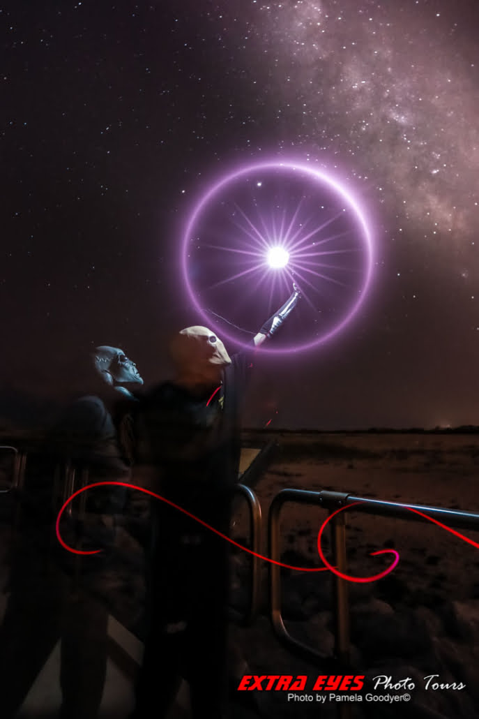 We’ll cover star trails and painting with light (bring your flashlight). We will do this trick photography in the last week of our four-week class. Sometimes we end up doing trick photography until after midnight, it’s that much fun. Pamela Goodyer often extends the class into the early morning hours if we are having too much fun, as she has difficulty stopping at a decent hour and ending the excitement.